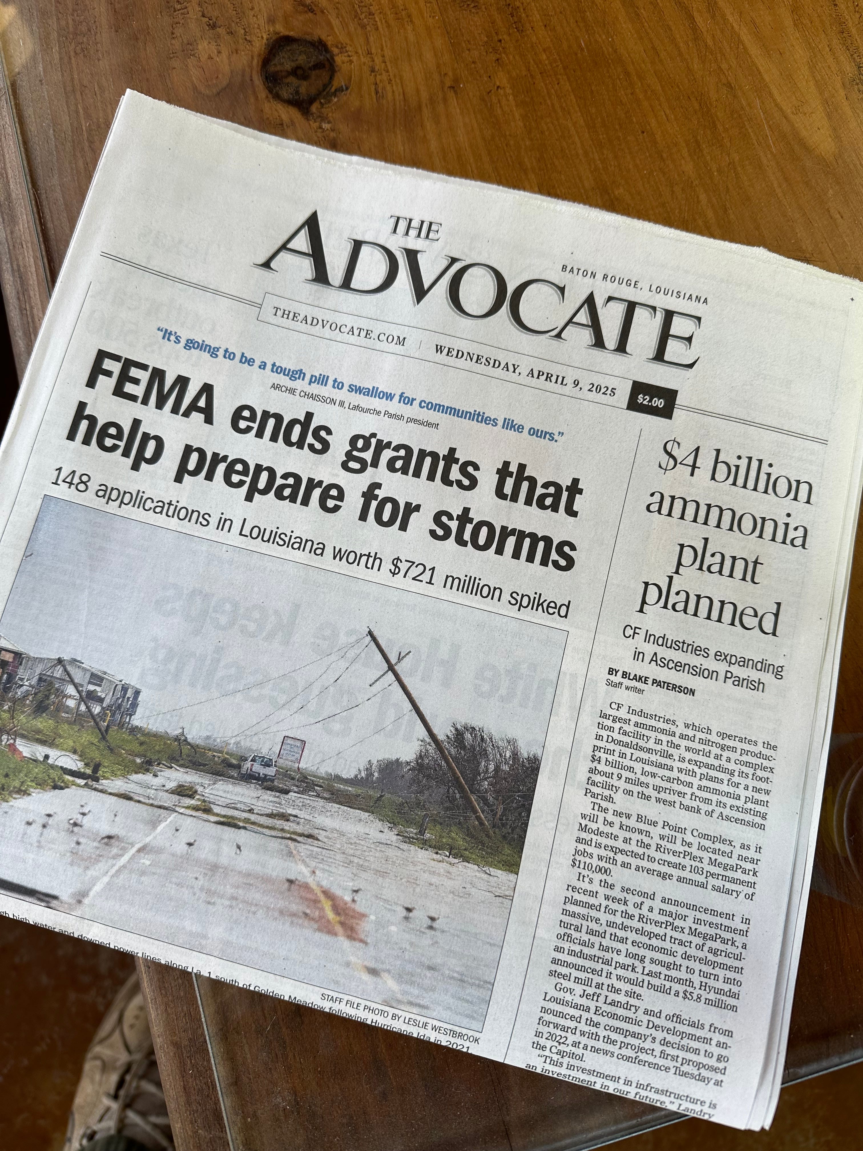 Which brings us to the present day—literally to today’s local news—in which three-quarters of a billion dollars in publicly funded storm aid to Louisiana citizens was cut out of FEMA, and four billion dollars (plus tax exemptions) simultaneously invested in a single chemical plant in Ascension Parish.